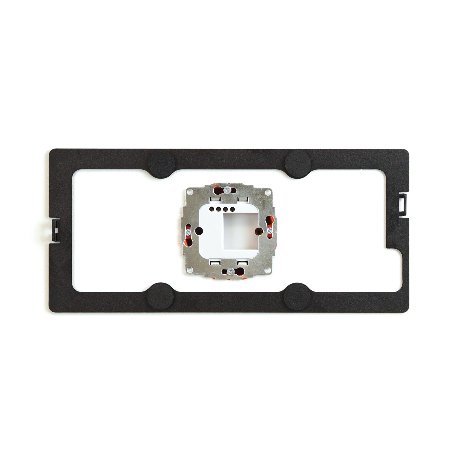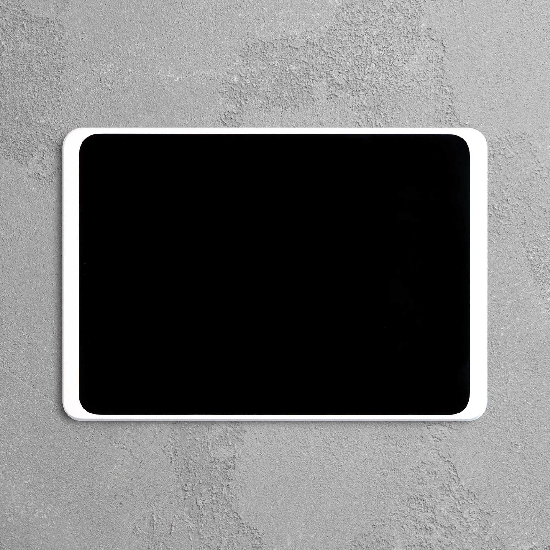 Het frame wordt direct op de muur bevestigd. Het frontpaneel is magnetisch en dus snel afneembaar. Er is intern ruimte voor aansluiting van iPad laadkabel.